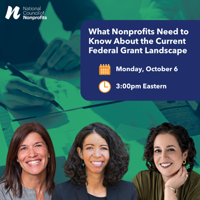 Register today to join the National Council of Nonprofits for a national webinar on Monday, October 6th at 3:00 pm Eastern to learn more about what nonprofits need to know about the government shutdown and current federal grant landscape.