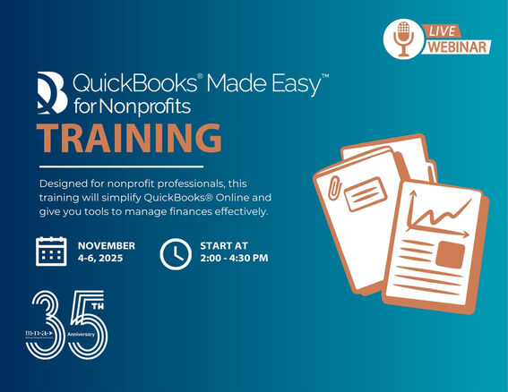 A 3-day webinar series (2 and a half hours per day) teaching 7.5 hours of vital QuickBooks® information specifically for non-profit organizations. CPE credits are also available. Participants can earn 7.5 hours of CPE credit (2.5 each day).
